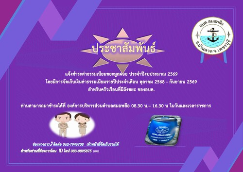 องค์การบริหารส่วนตำบลสมอพลือ อำเภอบ้านลาด จังหวัดเพชรบุรี โทร.0-3249-3529 ลิขสิทธิ์ © 2557-2564 องค์การบริหารส่วนตำบลสมอพลือ จังหวัดเพชรบุรี. สงวนไว้ซึ่งสิทธิทั้งหมด