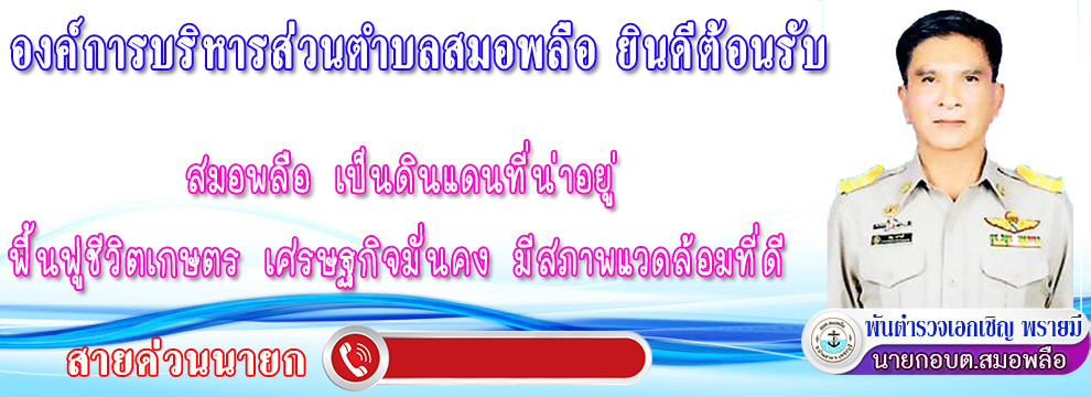 องค์การบริหารส่วนตำบลสมอพลือ อำเภอบ้านลาด จังหวัดเพชรบุรี โทร.0-3249-3529 ลิขสิทธิ์ © 2557-2564 องค์การบริหารส่วนตำบลสมอพลือ จังหวัดเพชรบุรี. สงวนไว้ซึ่งสิทธิทั้งหมด